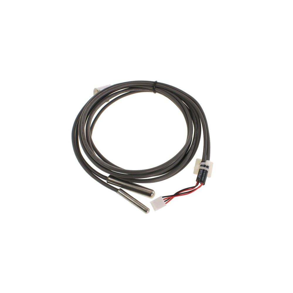 Dieses Kit enthält einen Temperaturfühler (das längste Kabel), der an der Hülle des Whirlpools installiert werden muss und in direktem Kontakt mit dem Wasser im Pool steht, und einen zweiten, kürzeren Fühler namens Hi-Limit (Überhitzung), der an der Außenseite der Heizung installiert ist.