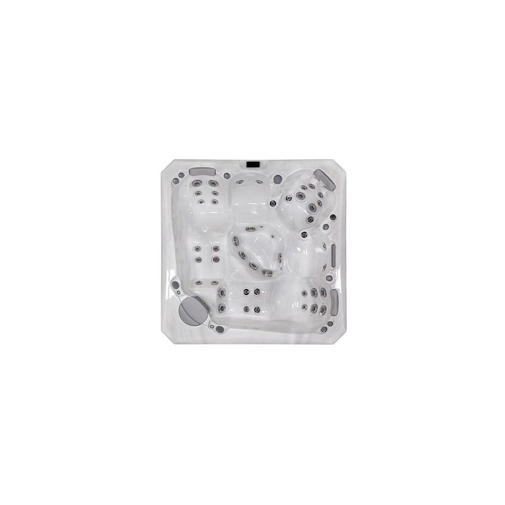 Ce spa est de 2 places allongées, 1 siège assis d’un éclairage de cascade, de deux jets de fontaine et d’un système audio 2.0 en équipement standard.