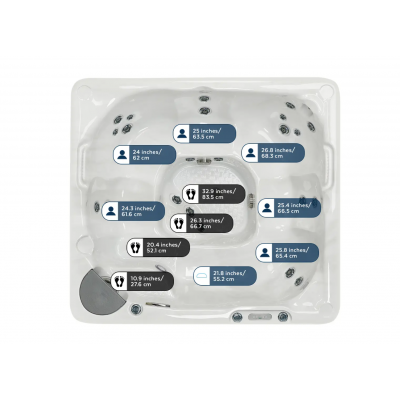 Ce spa dispose de sièges ergonomiques avec des zones d'assise à plusieurs niveaux.