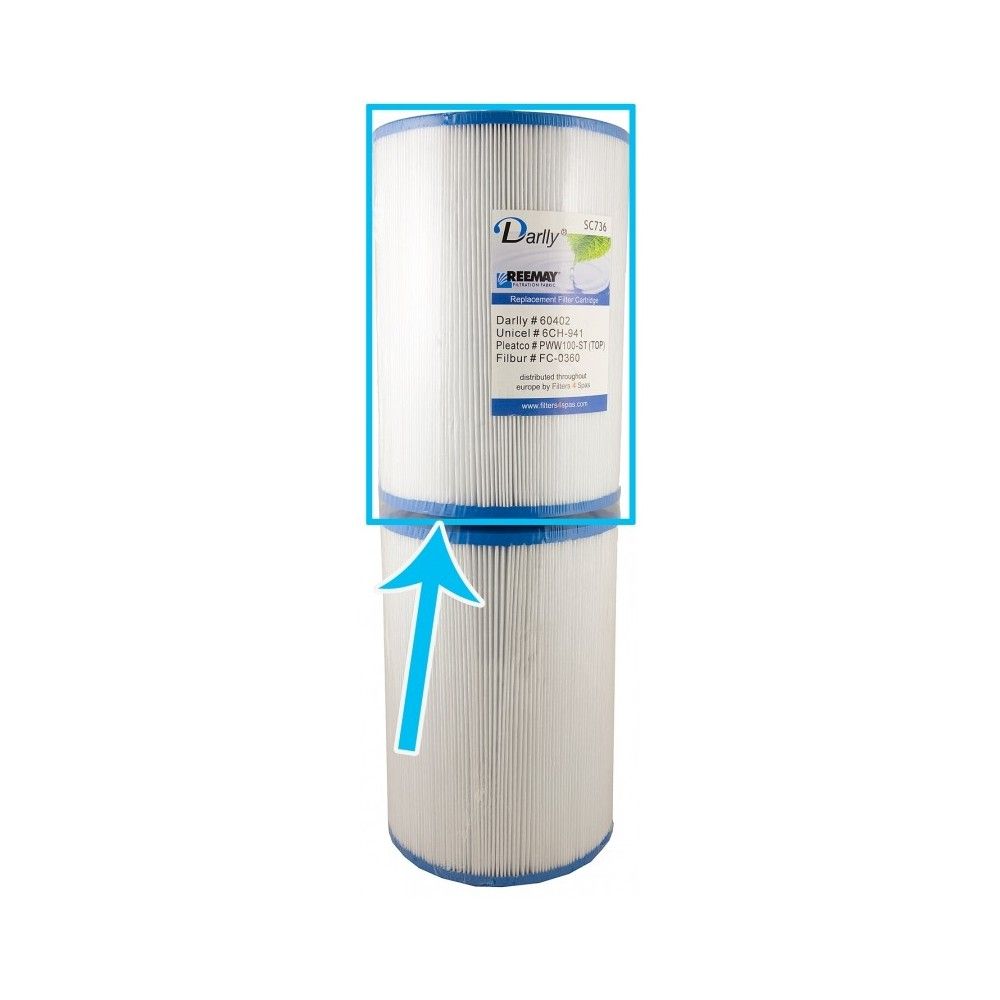 Cartouche filtrantOn trouve se filtre sous les références suivant: Darlly: 60403 Pleatco: PWW100 Unicel: 6CH-942Alps Spas, Elite Spas, Leisurite Spas Fonteyn Spas, Sunbelt Spas, Supérior SpaWaterway Plastics