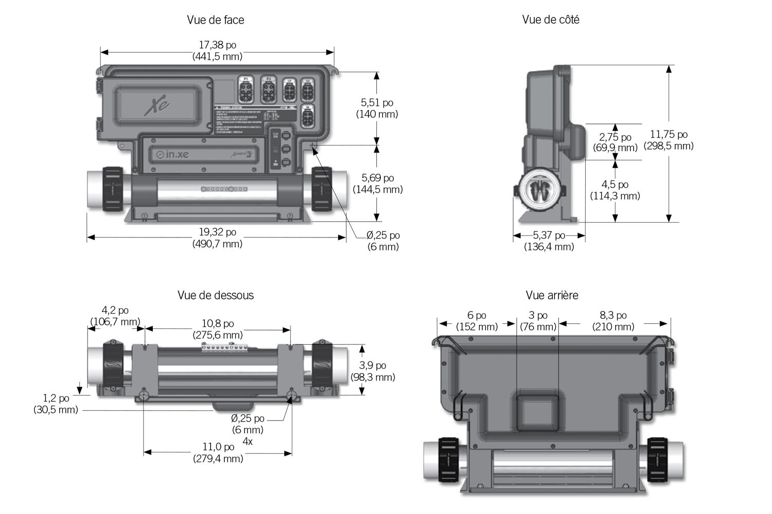 Le in.xe offre une gamme complète de configurations populaires et convient aux spas équipés d’une ou deux pompes, une soufflerie (blower), une pompe de circulation, un générateur d’ozone, une lampe d’ambiance et un chauffe-eau heat.wav. Il peut également contrôler des accessoires périphériques avec son connecteur de communication.